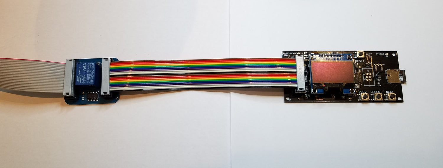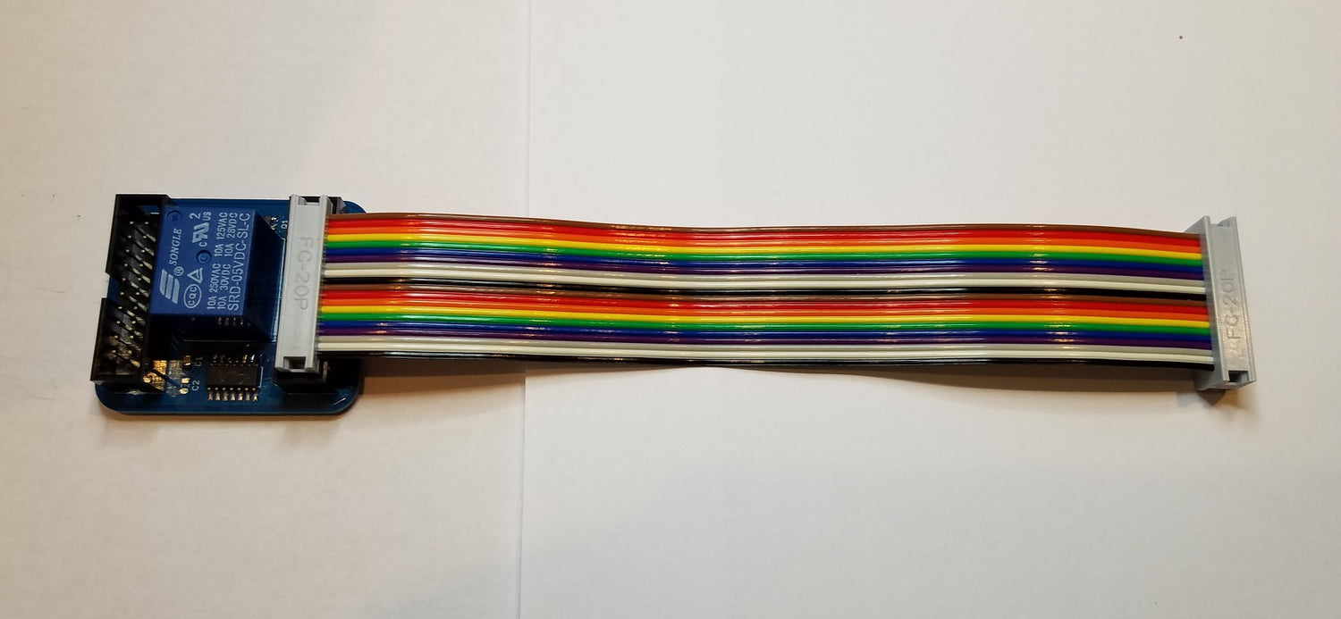 The Noisy Disk board attaches inline with your existing Floppy Emu cable, using the provided 6-inch extension cable. When Floppy Emu is configured to emulate a 5.25 inch Apple II floppy drive, the Noisy Disk onboard relay snaps open and shut whenever the emulated disk steps from one track to the next. It creates a symphony of disk noise that will bring back memories of 1979.